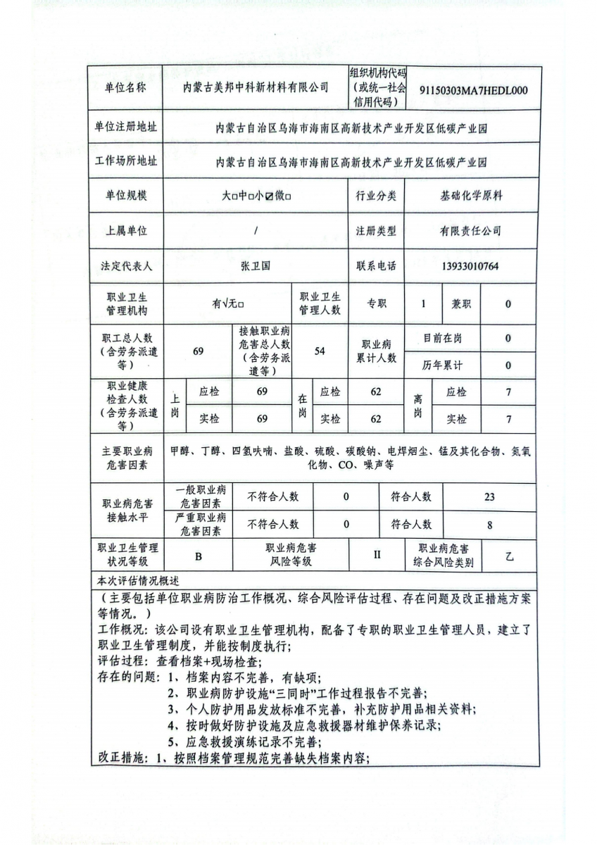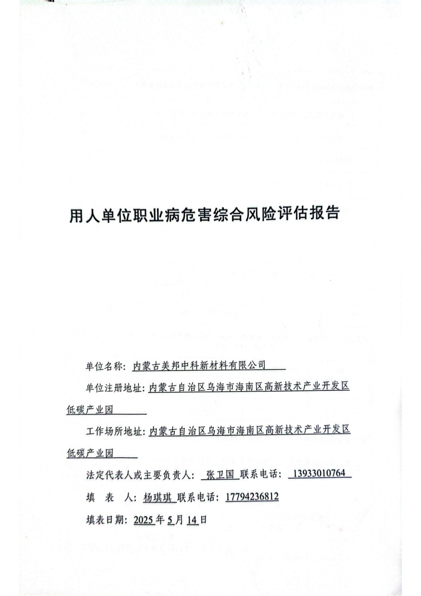 公示 | 用人单位职业病危害综合风险评估报告