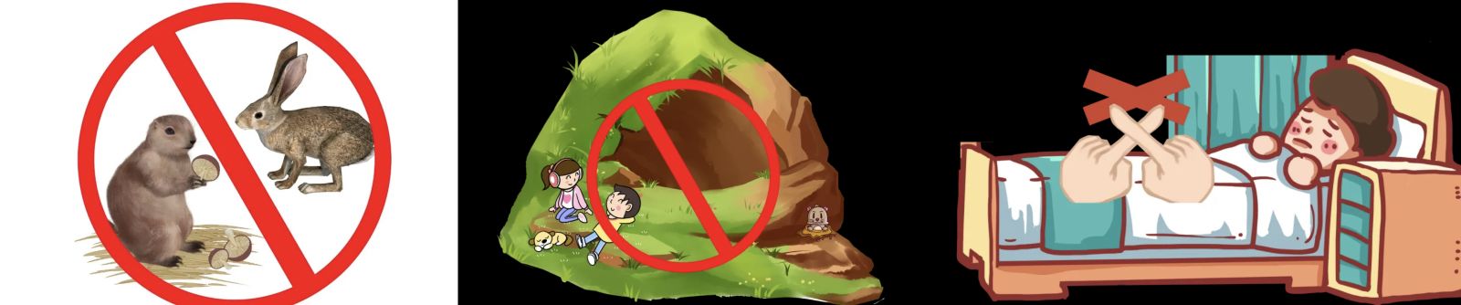 1、不接触、剥食和携带鼠、野兔、狐狸、旱獭等动物;