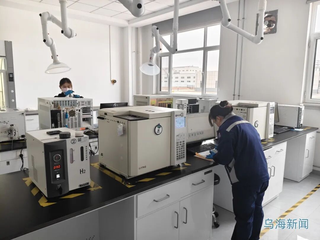 近日,记者来到位于乌海高新技术产业开发区的内蒙古美邦中科新材料有限公司,中控室内,大屏幕上实时显示着厂区各车间的画面和各工段的运行参数;实验室里,化验员正在对样品进行酸碱滴定、色谱分析等检验测试。