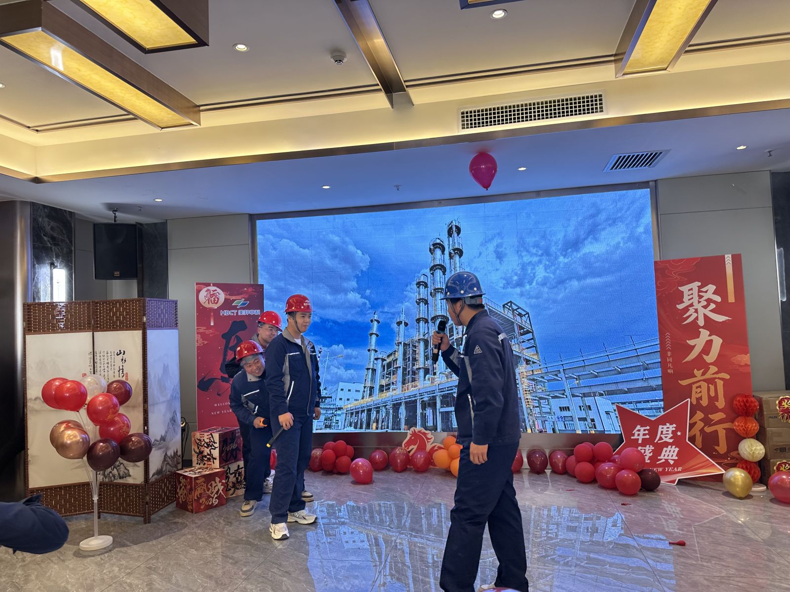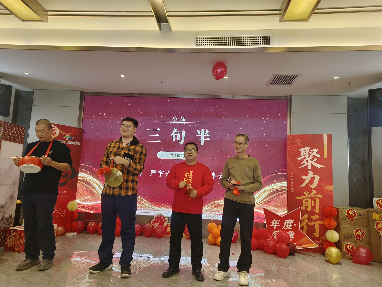 文艺表演与互动游戏交替上演,整场活动精彩纷呈,尽显团队风采与蓬勃朝气。质量检验部《欢乐中国年》歌伴舞点燃全场;仓储部诗朗诵《凝心聚力,共赴新程》传递责任初心;职能部室《蛙跃财来》舞蹈串烧动感喜庆,寓意财源广进;雷亚龙独唱《西海情歌》深情动人;生产车间小品《安全无小事》以诙谐方式诠释安全理念;安全管理部《小人舞》创意十足,笑点密集;供热车间《三句半》接地气的演绎传递欢乐;设备管理部合唱《难忘今宵》为文艺环节温情收尾。