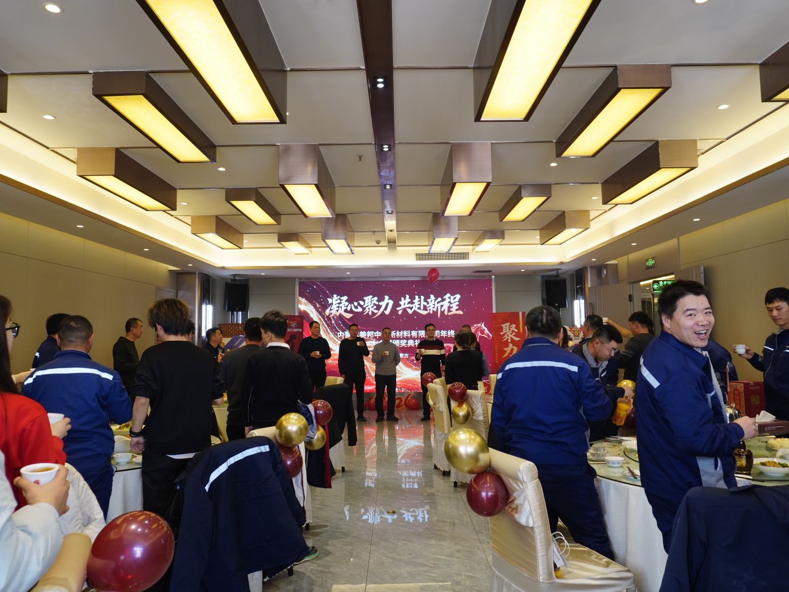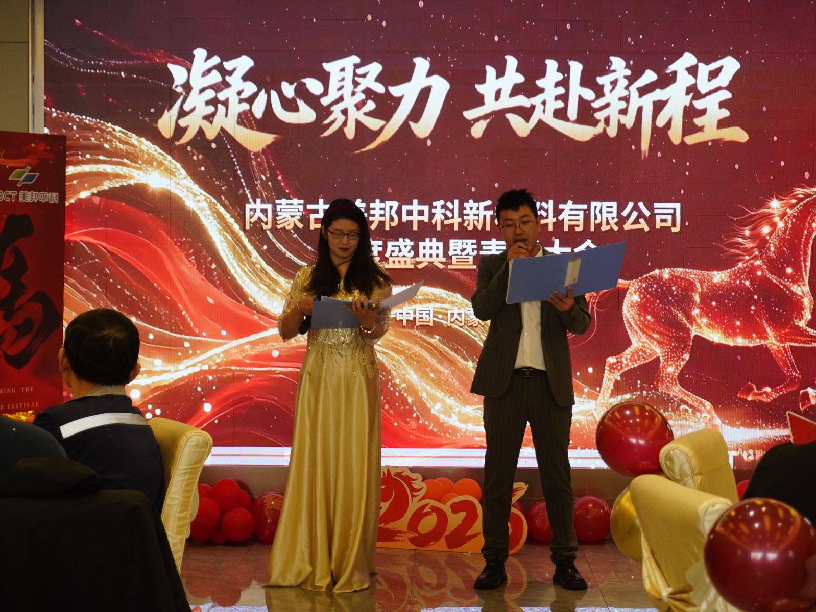 冬日暖阳和煦,岁末嘉会相逢。2月6日上午,内蒙古美邦中科新材料有限公司2025年年会盛典暨表彰大会在热烈祥和的氛围中隆重举行。公司领导班子成员与全体员工欢聚一堂,共忆过往奋斗征程,共话未来发展蓝图,共启新年美好篇章。