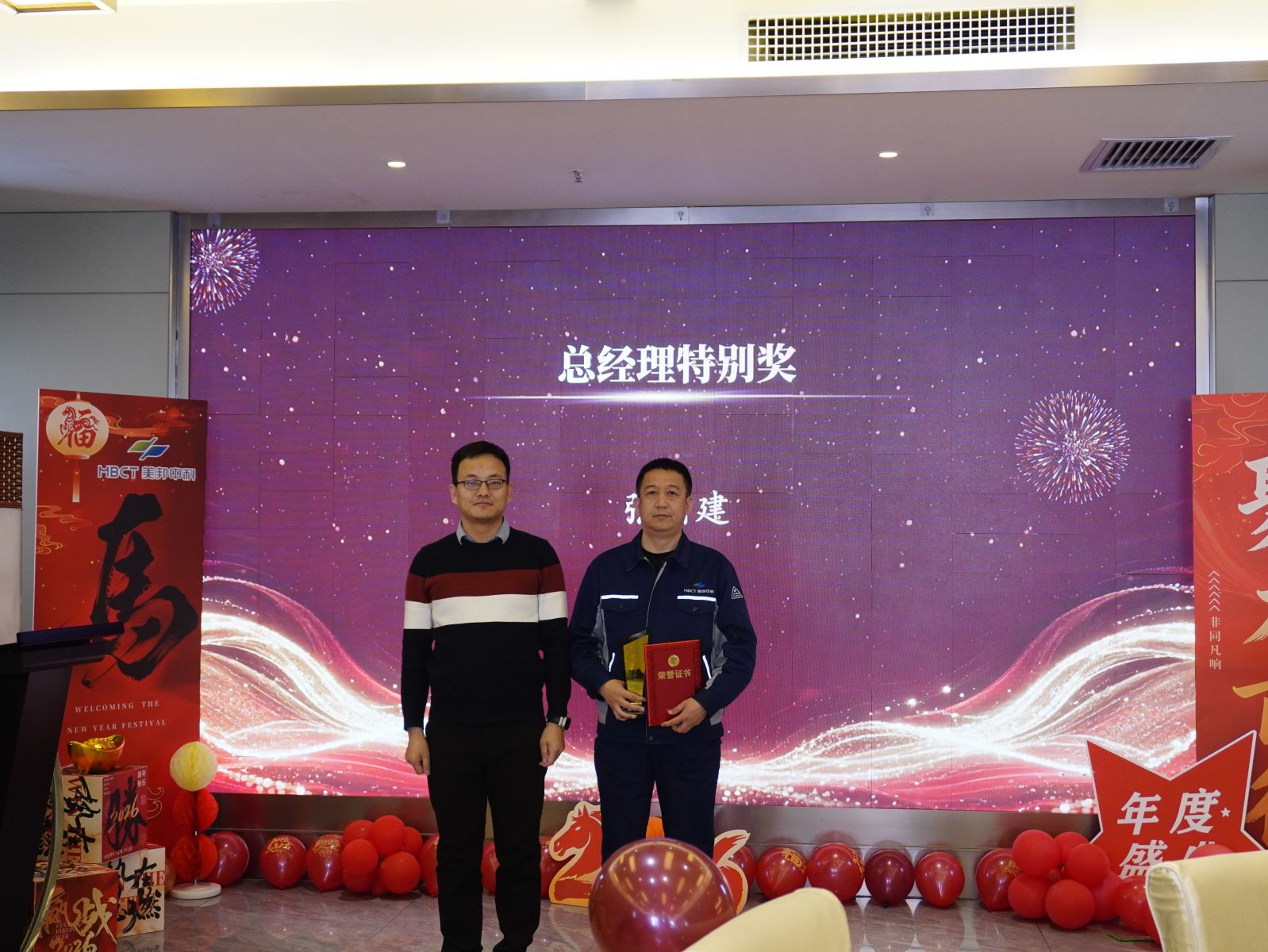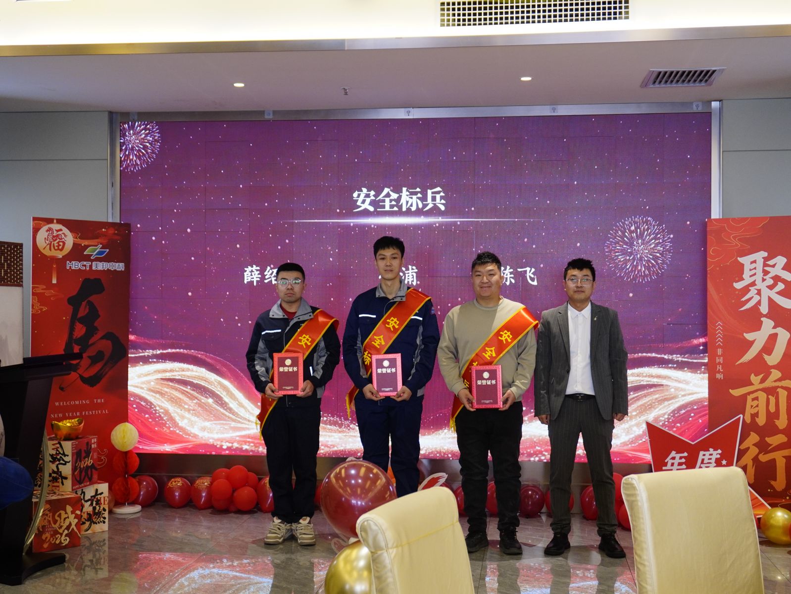 颁奖环节氛围庄重热烈,掌声不断。本次表彰设立优秀员工、安全标兵、优秀团队、优秀管理者及总经理特别奖等多个奖项,表彰先进典型、传递榜样力量。执行董事张卫国、总经理赵中贤等公司领导依次为获奖个人及团队颁奖,致敬其一年来的坚守与担当,激励全体同仁以先进为标杆、奋勇争先。