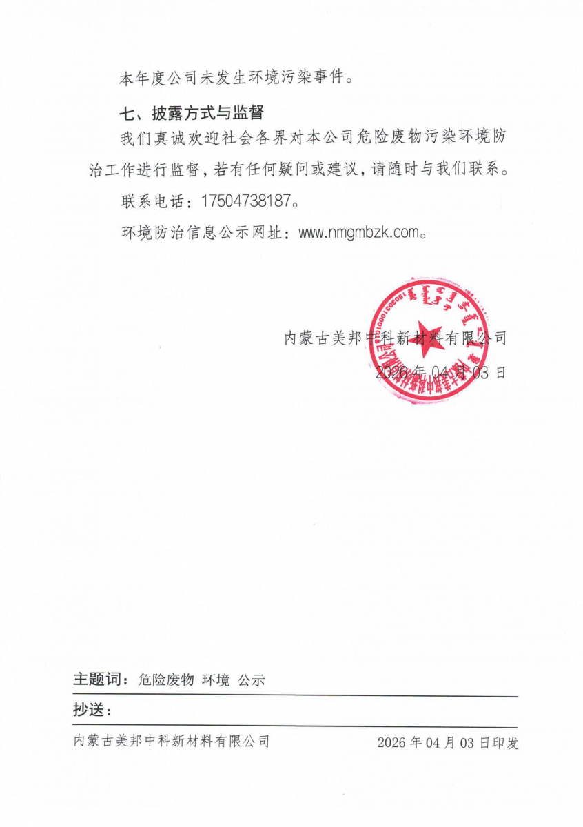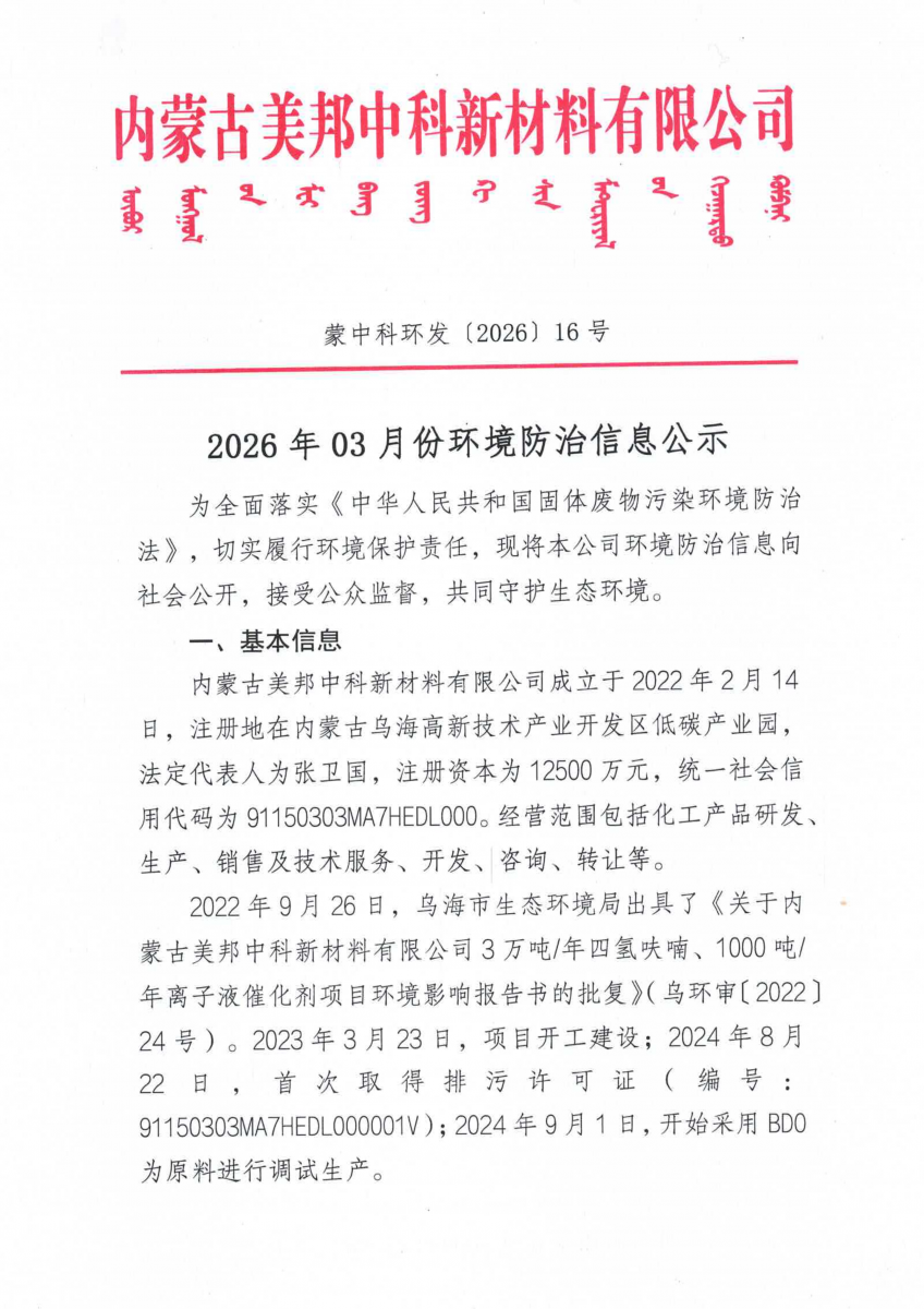 公示 | 2026年03月份环境防治信息公示