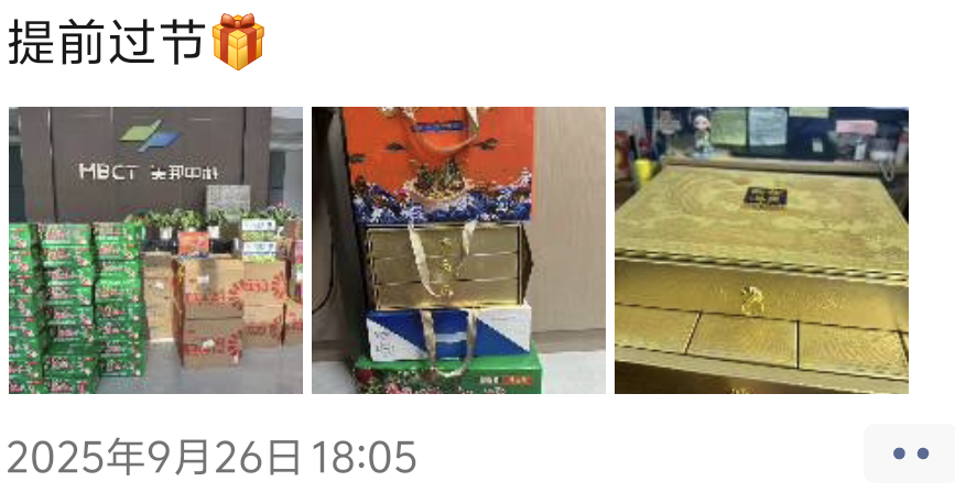 金桂溢香时,中秋意渐浓。值此阖家团圆的中秋佳节来临之际,为感恩全体员工的默默付出与奋力拼搏,9月26日下午,美邦中科正式举行中秋福利发放活动。一份份包装精美的礼盒,不仅是节日的仪式感,更承载着公司对每一位员工的暖心关怀与美好节日祝福。
