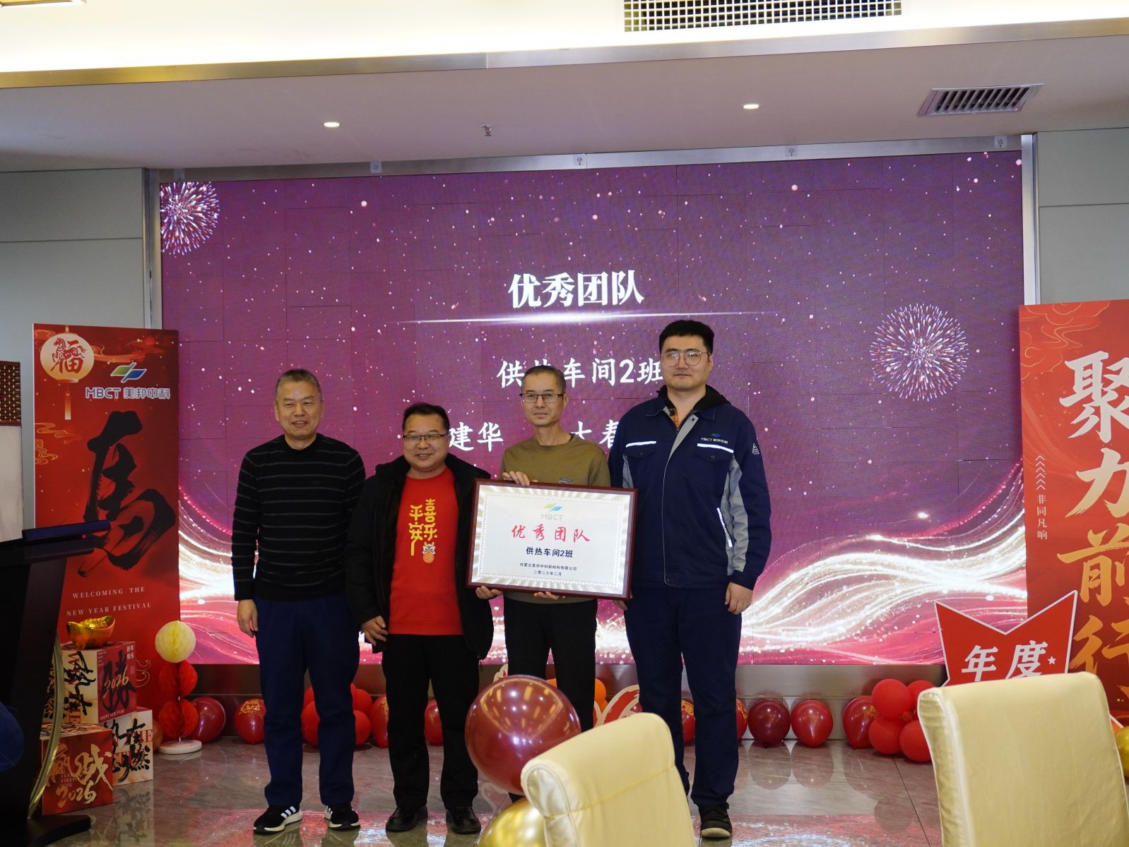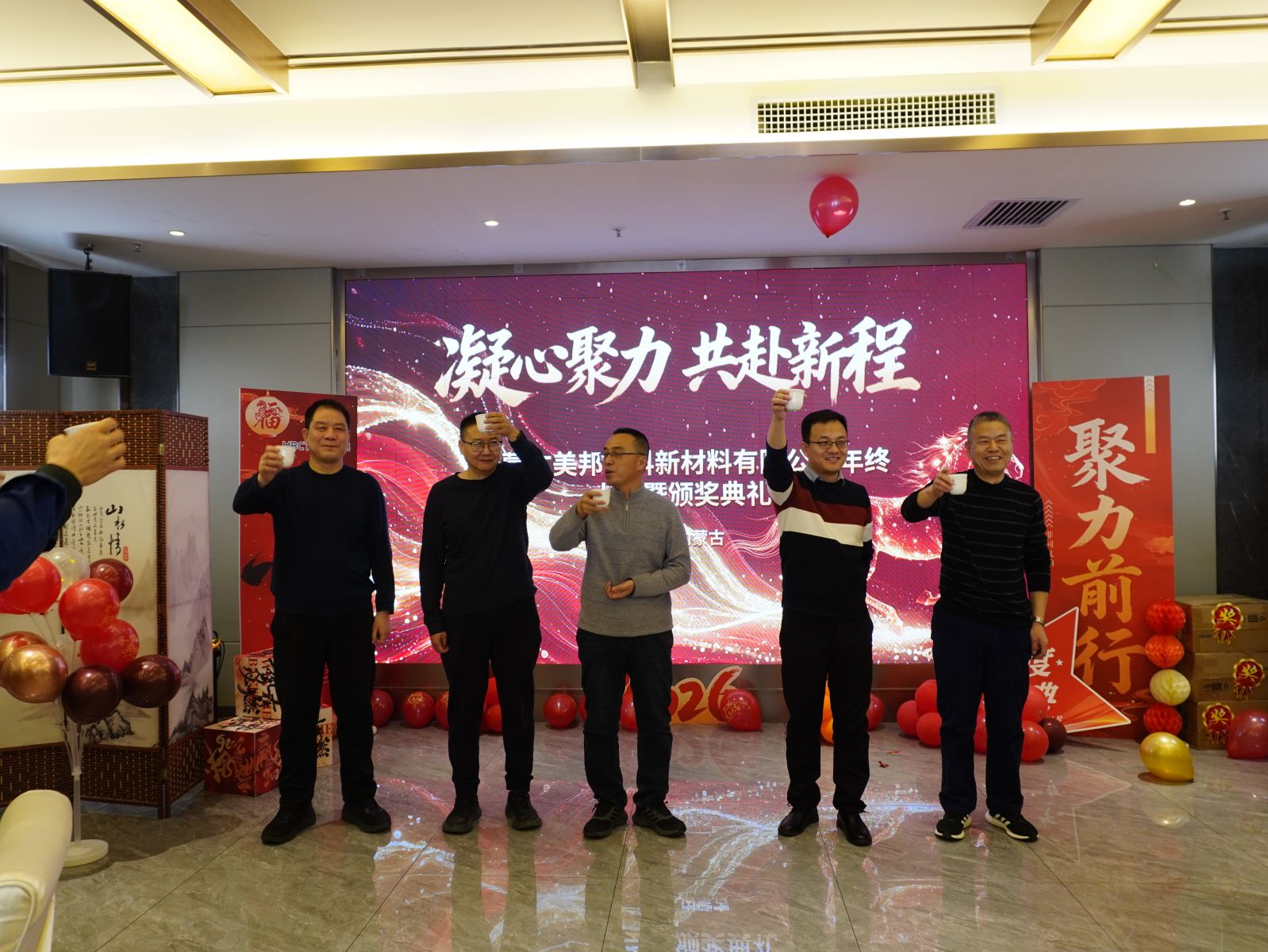 冬日暖阳和煦,岁末嘉会相逢。2月6日上午,内蒙古美邦中科新材料有限公司2025年年会盛典暨表彰大会在热烈祥和的氛围中隆重举行。公司领导班子成员与全体员工欢聚一堂,共忆过往奋斗征程,共话未来发展蓝图,共启新年美好篇章。